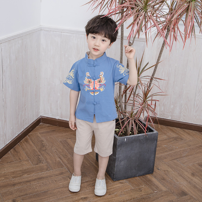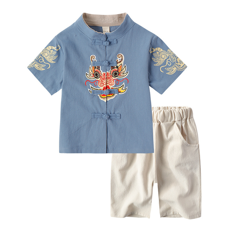 Children's Tang suit Hanfu Spring Set 2022, Chinese style short sleeve two-piece set for girls and boys, small and medium-sized children's ancient cotton linen outfit