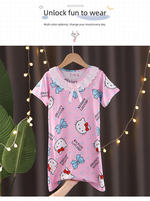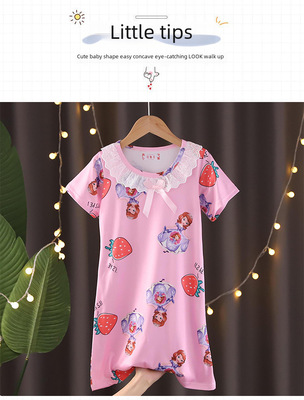 Cross-border wholesale children's pajamas princess floral lace short-sleeve sleepwear summer home clothes air-conditioned sleepwear