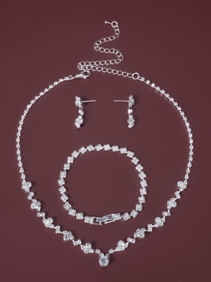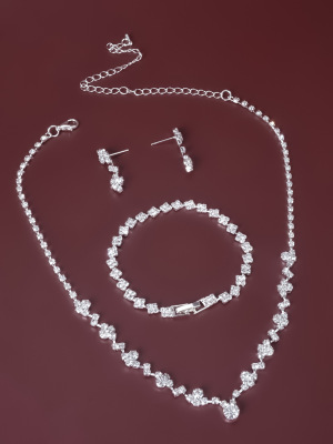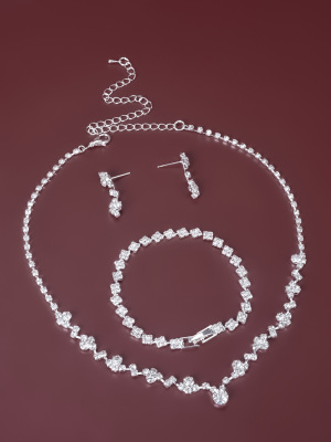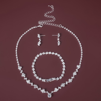 New Middle Eastern Popular Jewelry Diamond Three-Piece Necklace Set, Delicate and Versatile Wedding Accessory Direct Factory Sale