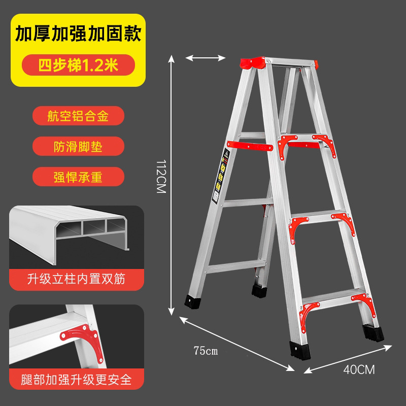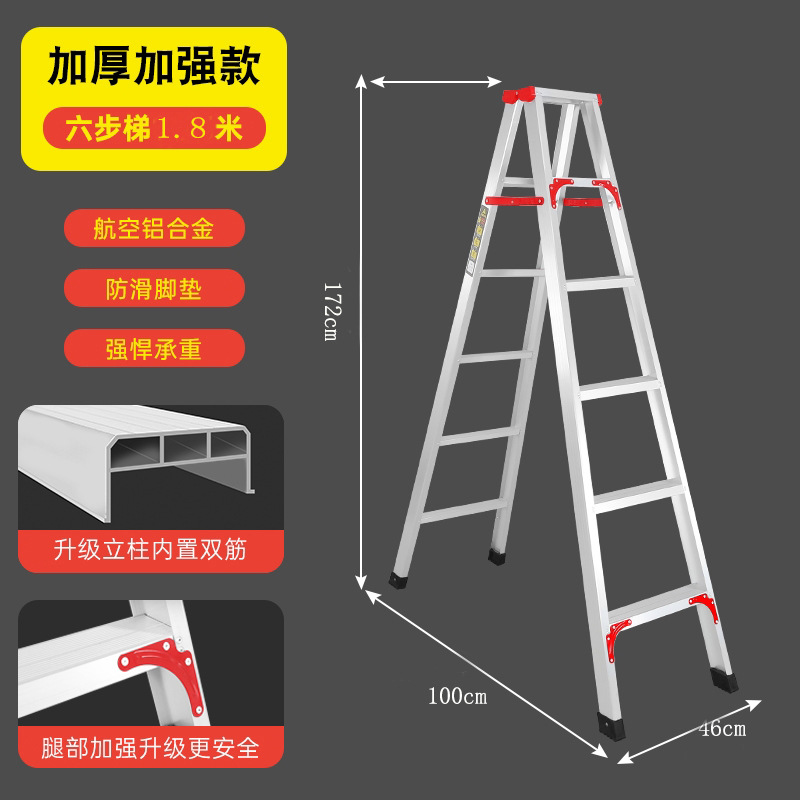 Aluminum alloy A-frame ladder, thickened and reinforced 3-meter 2-meter engineering special octagonal ladder, non-telescopic, foldable, household portable