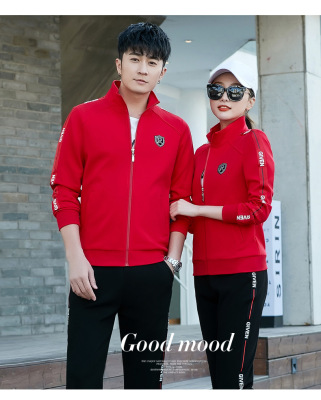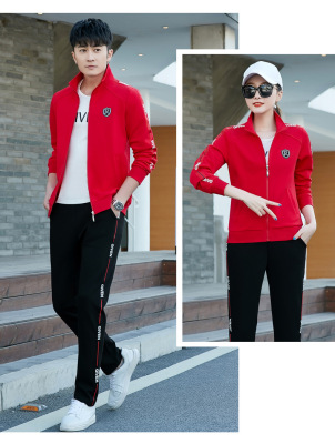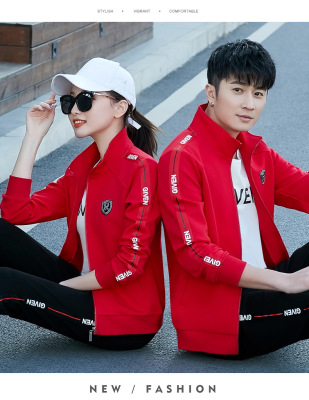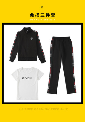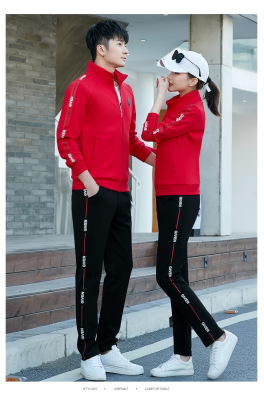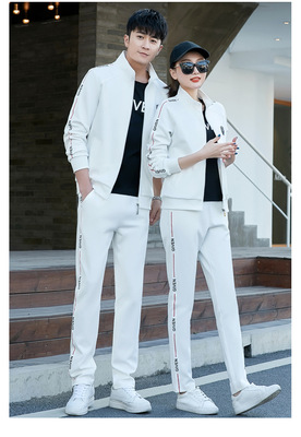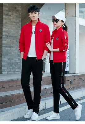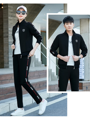 Couple's sportswear set casual three-piece set fashionable Korean-style slimming sports top with men's hoodie set spring and autumn