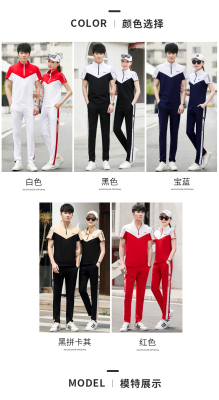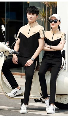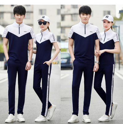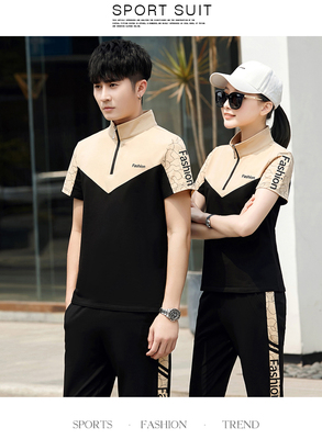 情侶裝夏季新款2023潮流修身男士短袖薄款印花運動服休閒t恤一套