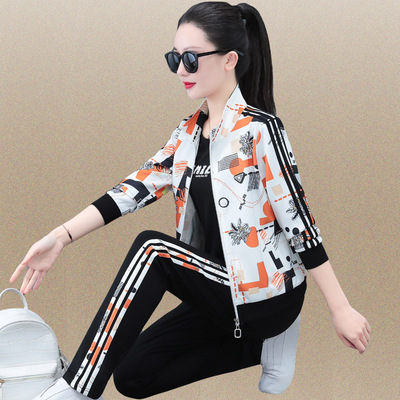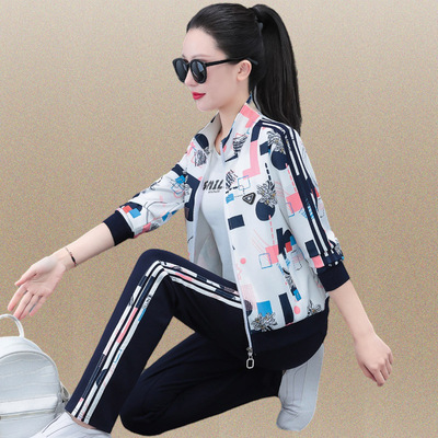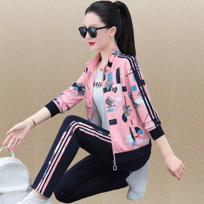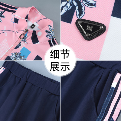 運動套裝女士春秋2024新款時尚潮牌立領衛衣顯瘦印花休閒服兩件套