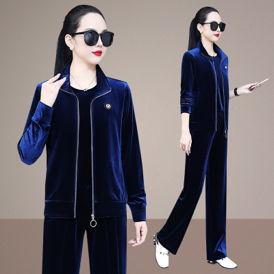 洋氣運動套裝女春秋2024新款時尚氣質外套寬鬆跑步休閒服三件套潮