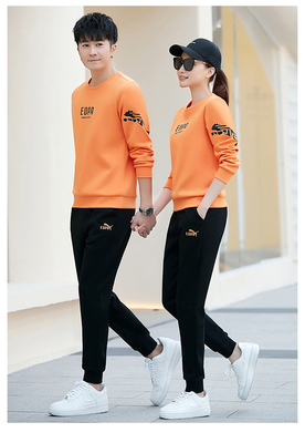 2022 Spring Couple Sports Set Men's Round Neck Long Sleeve Sports Suit Set Men Spring Autumn Women Casual Sweatshirt Cotton