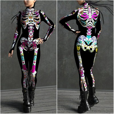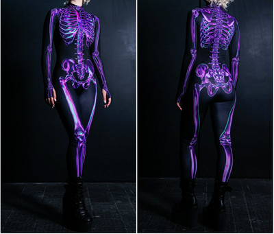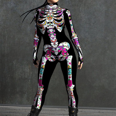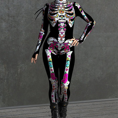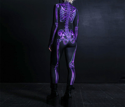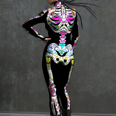 New Halloween Women's Cool and Scary Human Skeleton 3D Digital Print Bodysuit