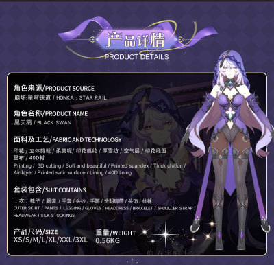 Bungie Star Rail Cosplay Costume Remembrance Black Swan Costume Game Anime Character Role-Playing Cosplay Costume