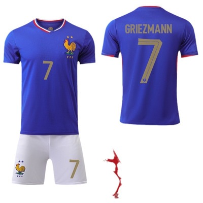 The 2024 UEFA European Championship home kit featuring Kylian Mbappé in the #10 jersey, Giroud in the #9, Dembélé in the #11, and Griezmann in the #7.