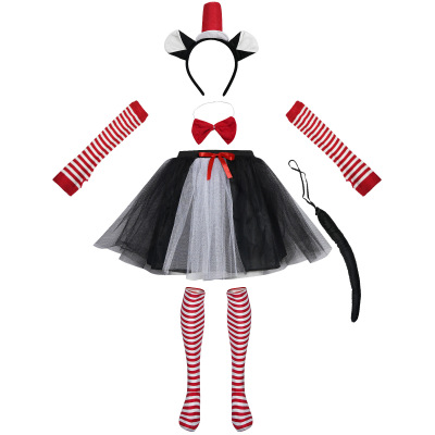 Anime-style Halloween Cat Ears Costume Headband, Red Stove Hat, Skirt Cosplay Costume