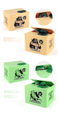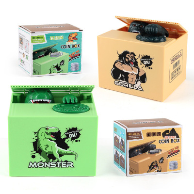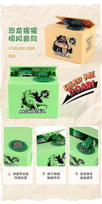 Cross-border children's creative dinosaur monkey money jar with simulated sound effects, large capacity, save and retrieve money jar, cartoon gift