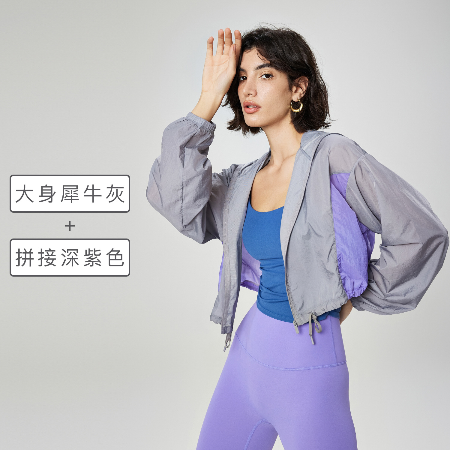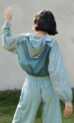 Women's Spring and Summer New Cap Sweatshirt Yoga Top High-End Contrast Color Sports Jacket Drawstring Lightweight Breathable Long Sleeve Fitness Outwear