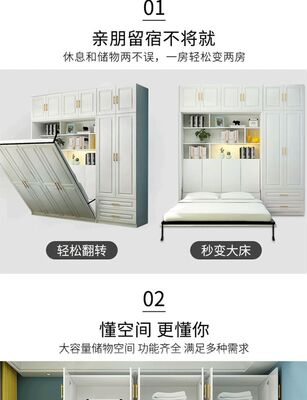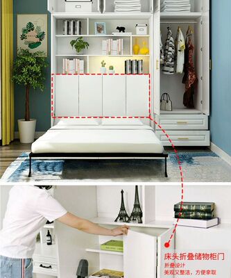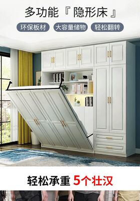 Invisible bed and wardrobe integrated multi-functional small household folding bed wall bed saves space and study wardrobe integrated