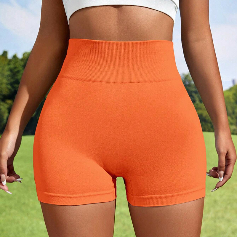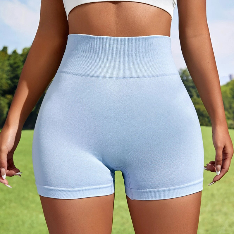 歐美跨境無縫針織瑜伽短褲蜜桃提臀高腰健身褲跑步運動短褲三分女