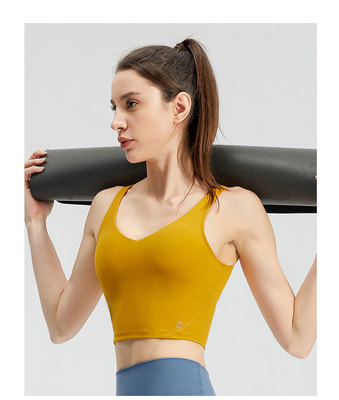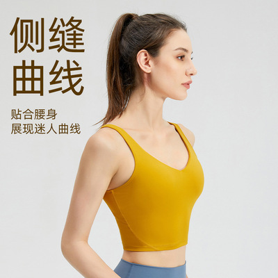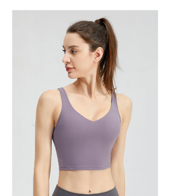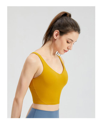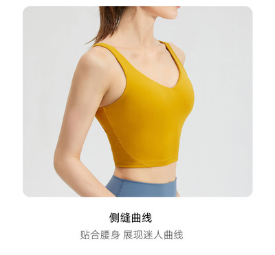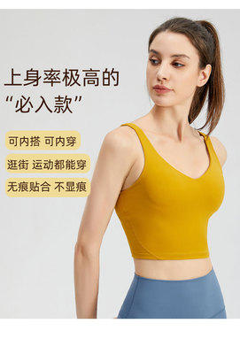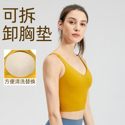 Lulu sports bra with chest pads for women, outdoor shock-proof, sexy, quick-drying vest—perfect for fitness, running, and yoga wear.