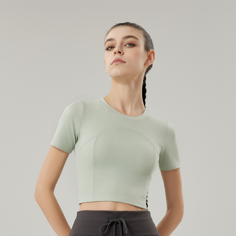 瑜伽服女2024新款帶胸墊運動上衣高端運動健身收腰顯瘦緊身短袖