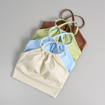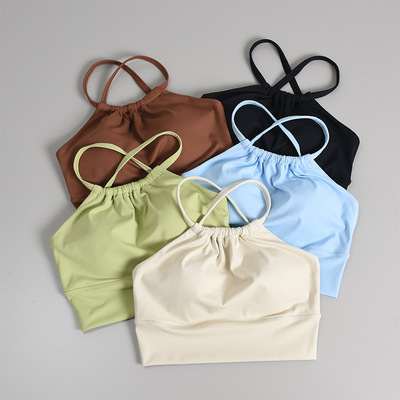lulu瑜伽服吊帶背心一體式運動文胸夏防震女健身上衣外穿美背內衣