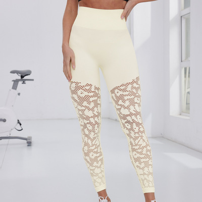 Women's Yoga Pants - European and American New Style Seamless Mesh Summer Breathable Fitness High Elastic Invisible Bare Skin Sports Pants