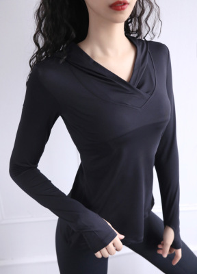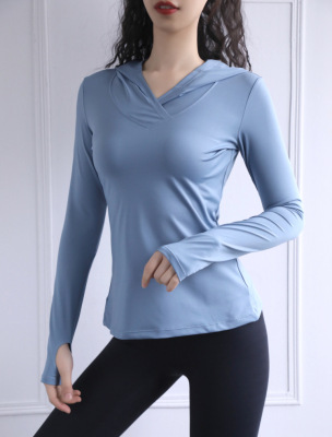 T-shirt with heart-shaped hood, women's slimming fitness top, weight-loss running sweatshirt, breathable long-sleeved yoga wear for women, trending