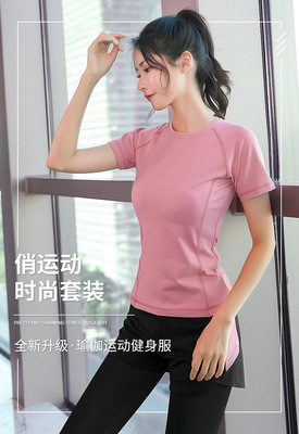 Short-sleeve top + camisole + pants - peach red