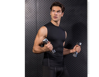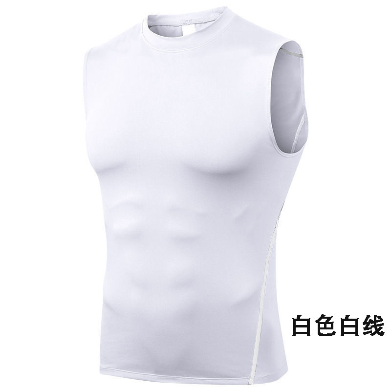 Sports Fitness Tank Top Shoulderless T-Shirt Men Fitted Round Neck Sweatshirt Tight Quick-Dry Gym Fitness Clothing Men