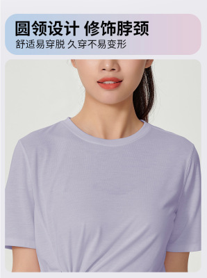 Aididi Summer Fitness Quick-Drying T-Shirt Women's Loose-Fitting Body-Slimming Skin-Friendly Solid Color Two-Way Yoga Half-Sleeve Top
