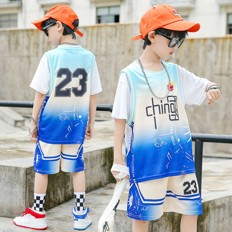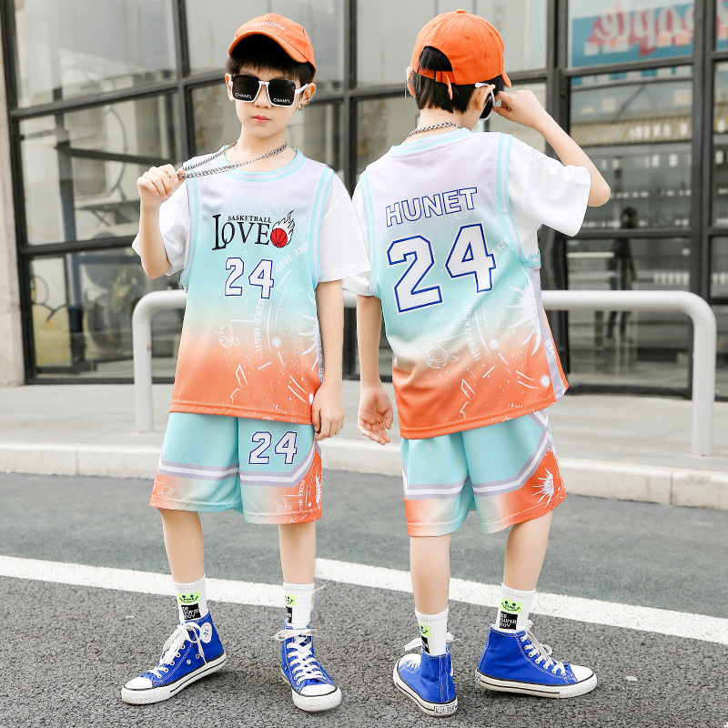 Children's Basketball Uniform Wholesale Custom Printing 24 Short Sleeve Set Men's Summer Sports Training Quick Dry Breathable Ball Shirts