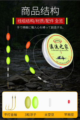 Wild fishing stream line set ultra-sensitive single hook through line small fish line set for stream rock bream line binding factory
