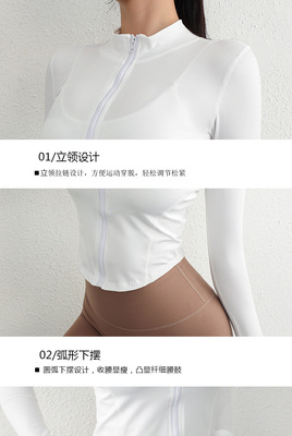 Women's Fitted White Running Top with Collar, Long Sleeve, Quick-Drying, Slimming Yoga Jacket with Zipper