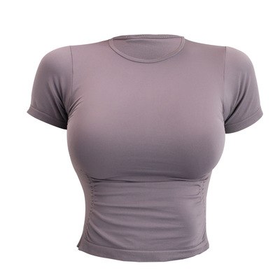 Fitness Yoga Shaping Wrap Skirt Yoga Clothes Short Sleeve Women Casual Versatile Fitness Top Tight Slimming Sports Top Summer