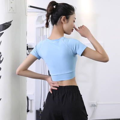 Yoga tops short-sleeve quick-dry tops revealing navel short fitness clothes sport T-shirt running elastic tight half-sleeve