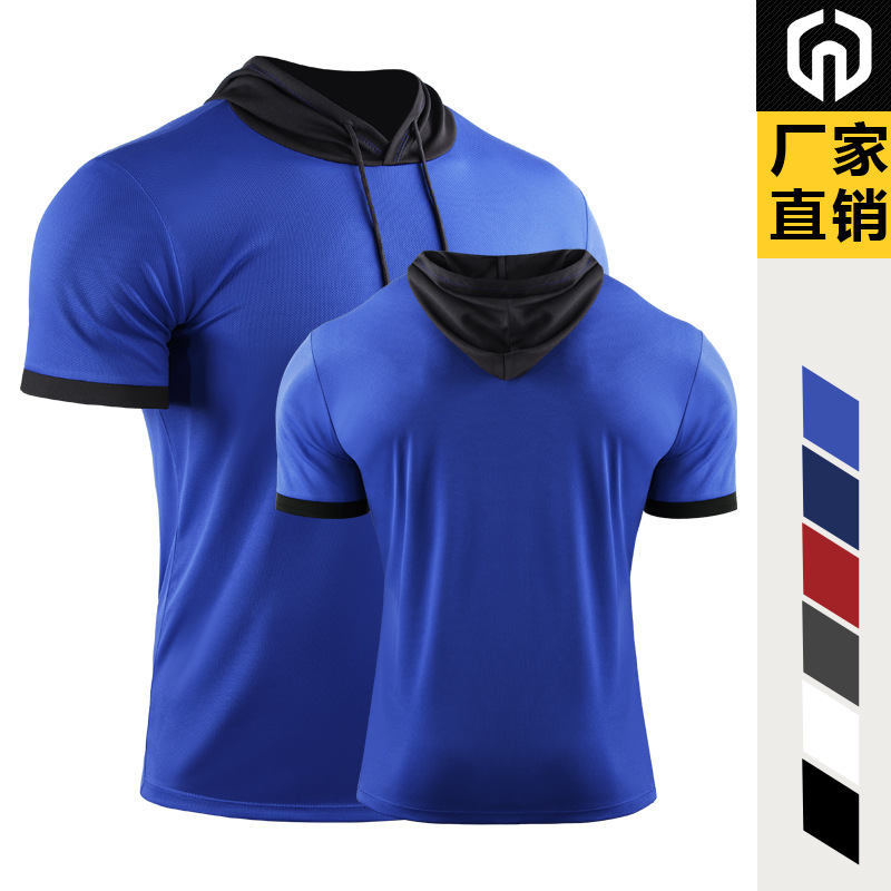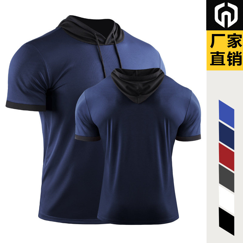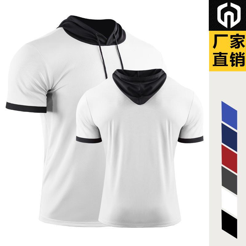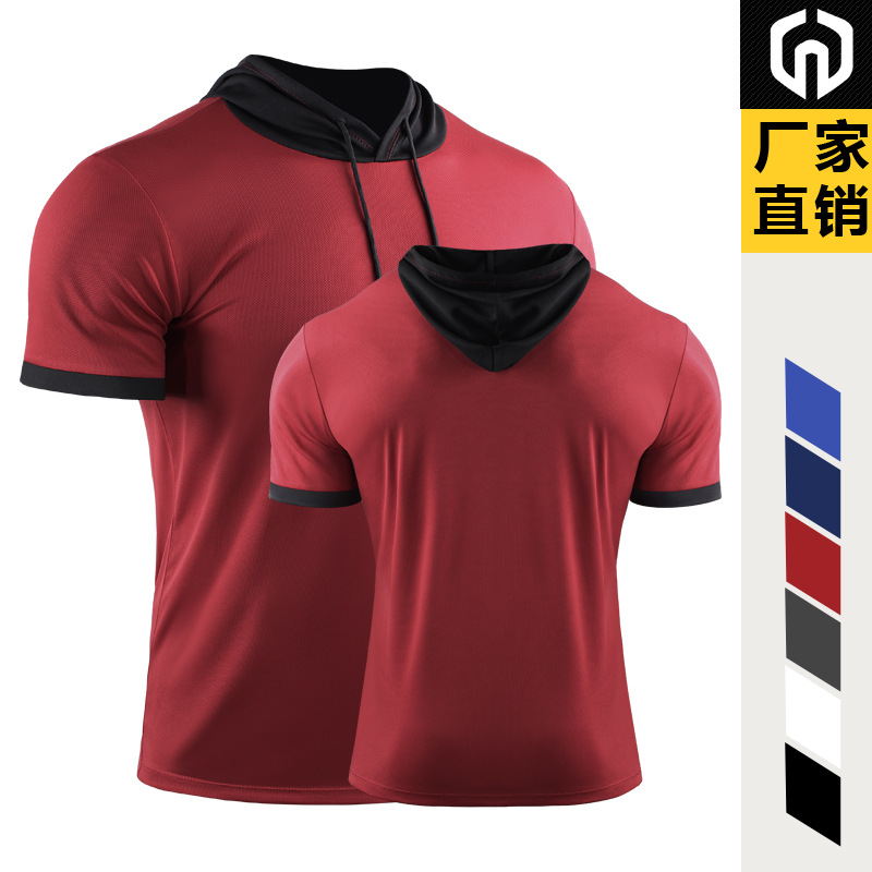 Summer Basketball Hooded Sportswear Running Hiking Striped Fitness T-Shirt Quick-Drying Breathable Short-Sleeve Training Top