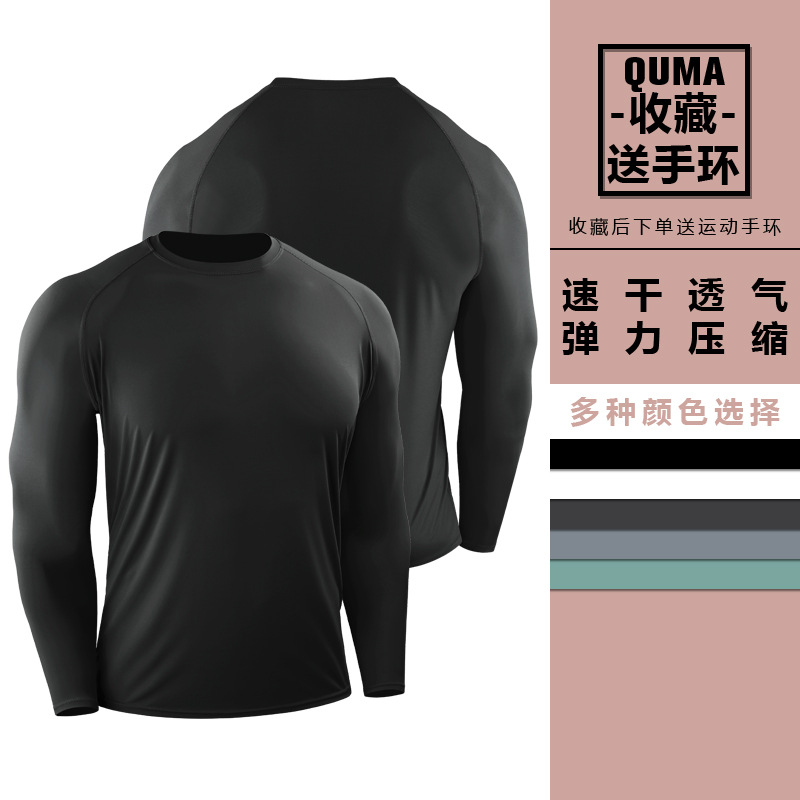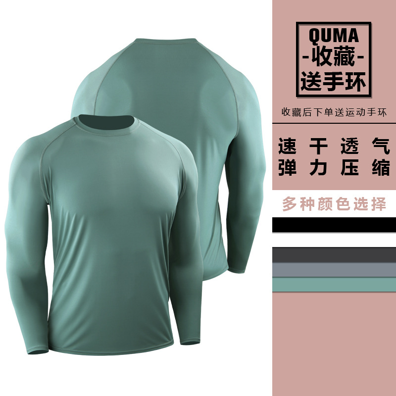 Men's Long-Sleeve Sports T-Shirt Quick-Dry Base Shirt for Running Marathon High-Elasticity Ice Sensation Sun Protection Fitness Clothing