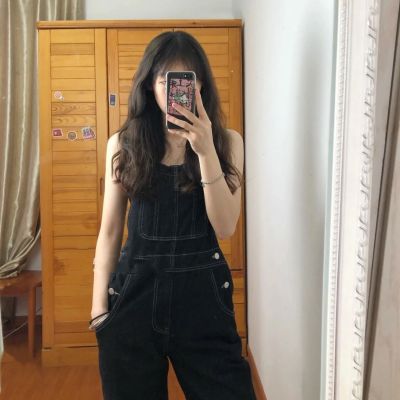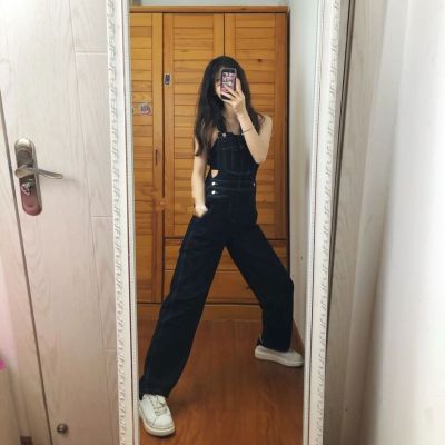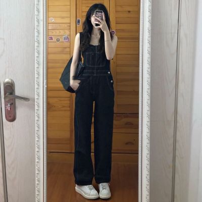 Lazy casual small-tone droopy overalls for women in spring and summer high-waisted retro loose slimming wide-leg suspenders jumpsuit