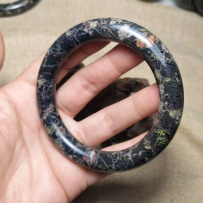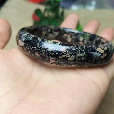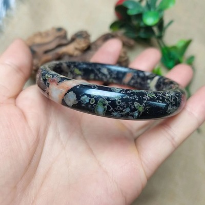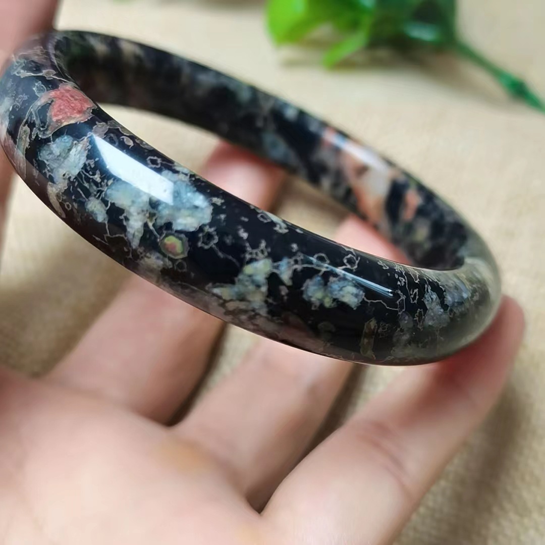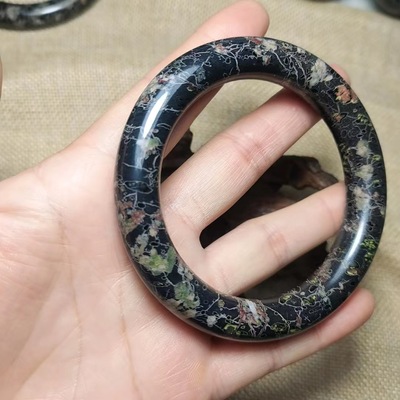 Factory Wholesale Natural Plum Blossom Jade Bracelet with Magnetic Jade Round Bar Bracelet, Peach Blossom Jade Bracelet Live Stream Jade Supply