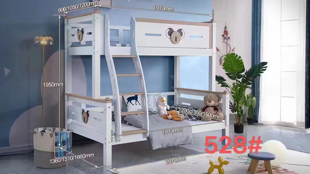 The upper bunk is 1.05m x 1.9m wide, and the lower bunk is 1.35m x 1.9m wide.
