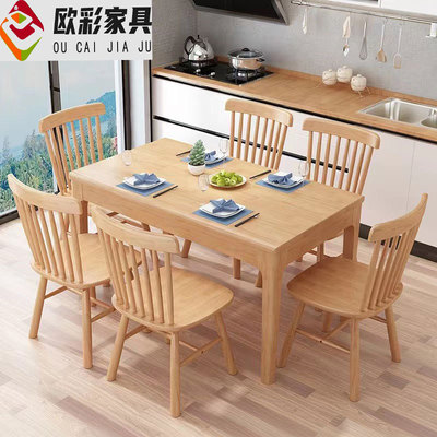 北歐實木餐桌椅組合現代簡約民宿長方形桌子家用小戶型餐廳吃飯桌