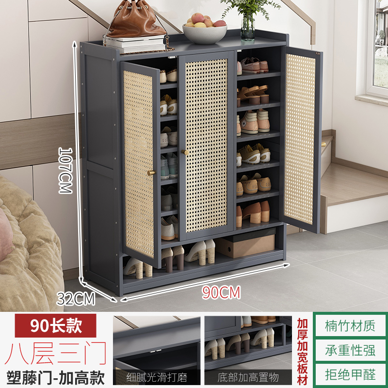 Grey 3-door 8-layer wicker door【thickened board】