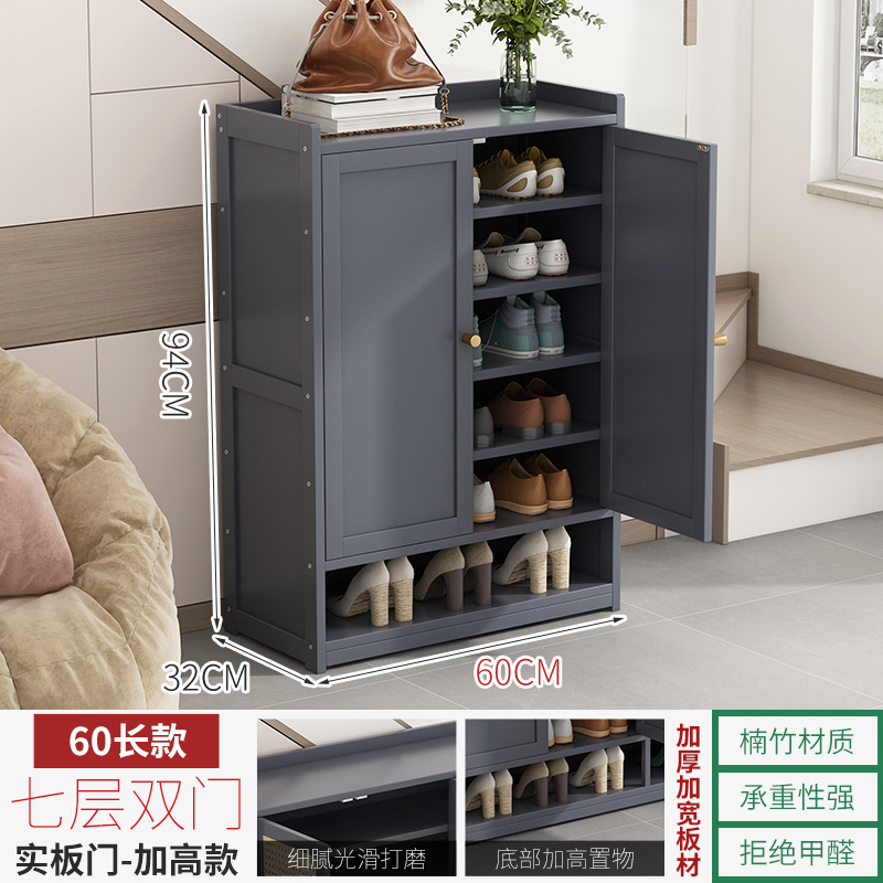 Gray 2-door 7-layer solid panel door【thickened panel】