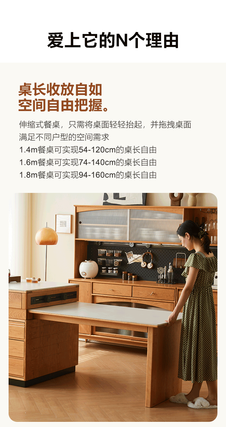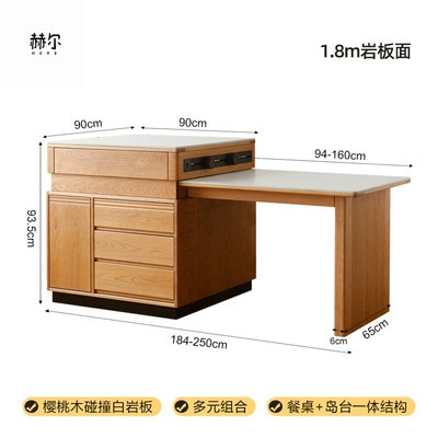 赫爾實木島台餐桌一體家用小戶型櫻桃木可伸縮吧檯岩板中島台餐桌