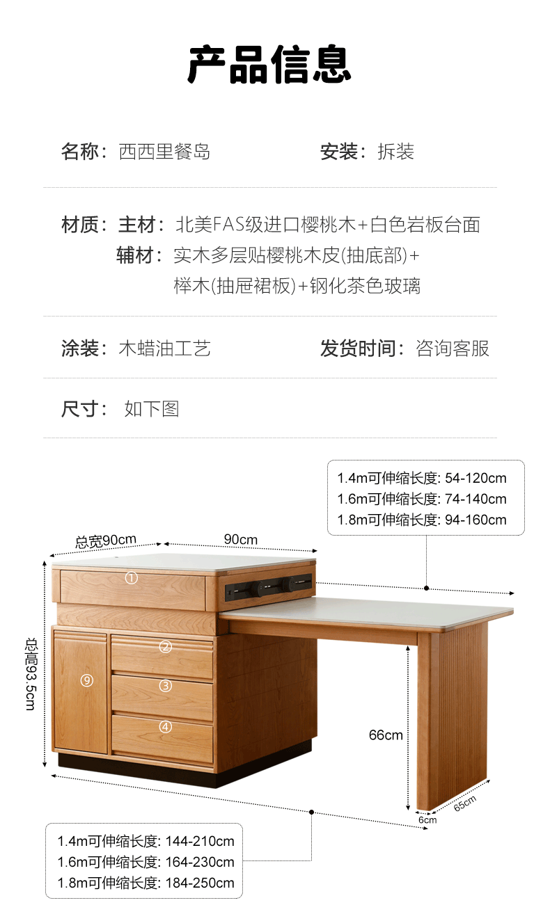 規格:【櫻桃木】1.6米白岩板桌面+90cm中島台