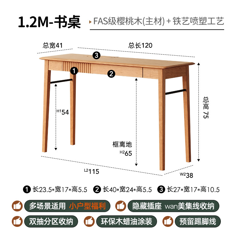 1.2M書桌【櫻桃木】