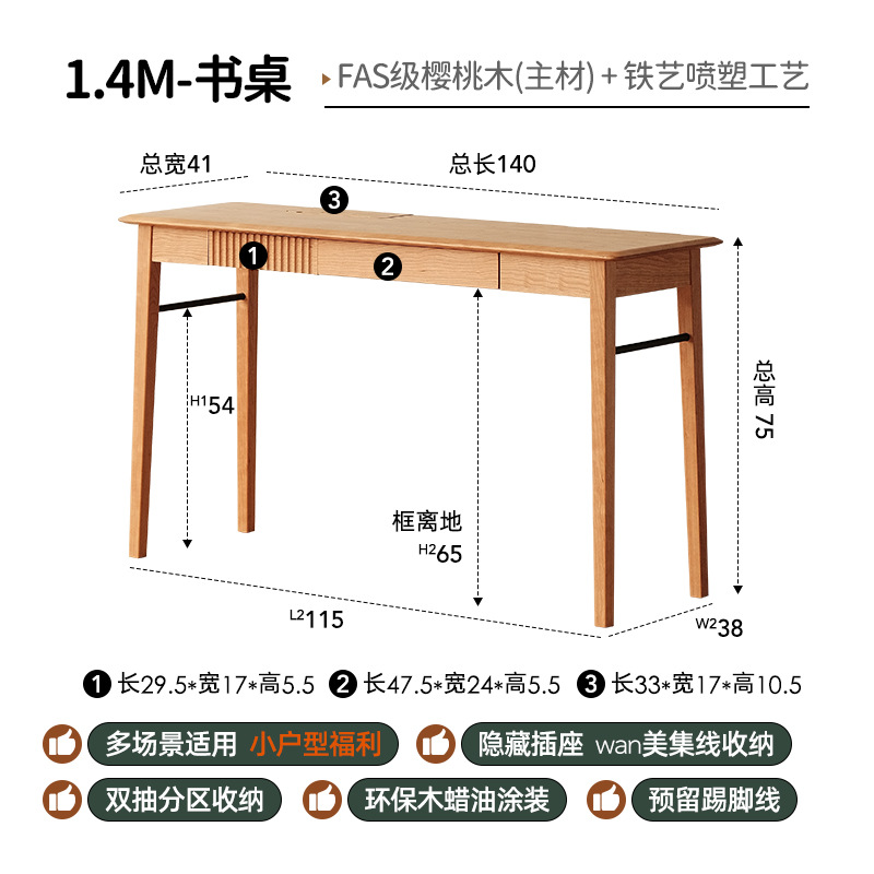 1.4M書桌【櫻桃木】