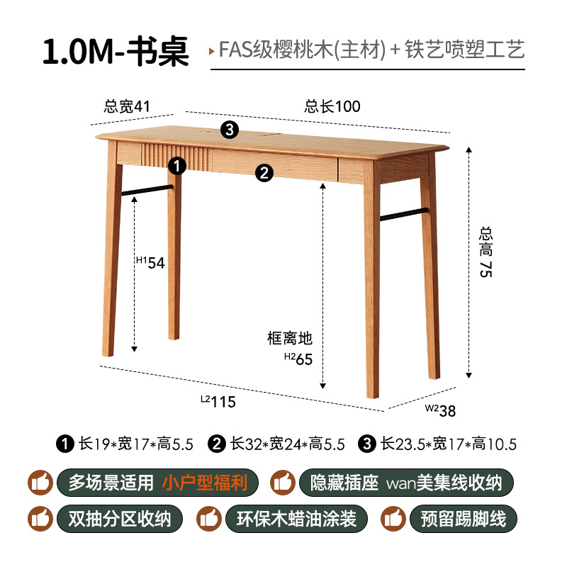 1M書桌【櫻桃木】