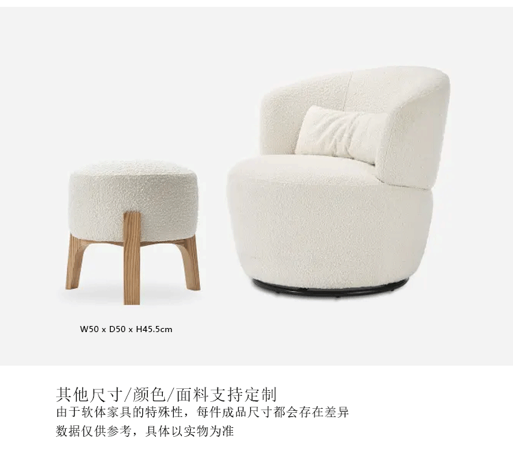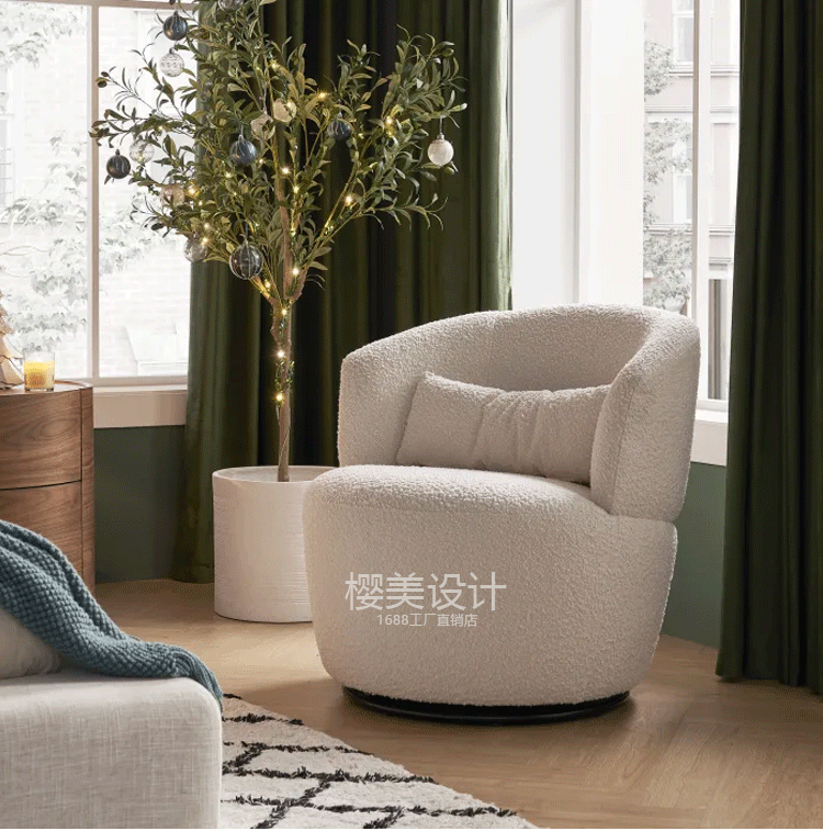 Italian-style medium sheep's wool cream cream single rotating chair Nordic light luxury minimalist balcony studio beauty salon sofa