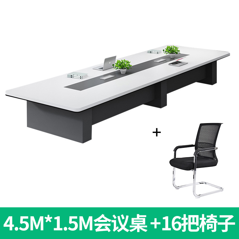 White large conference table, minimalist modern negotiation desk and chair set, reception and training, board-style rectangular office furniture
