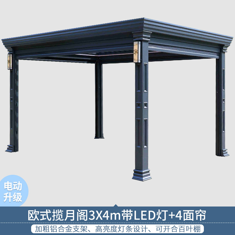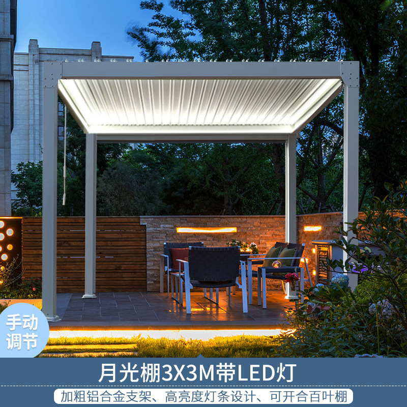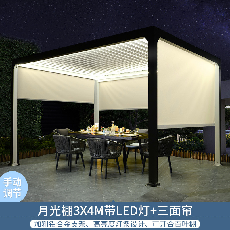 Villa courtyard pavilion outdoor aluminum Chinese sunshade canopy outdoor rooftop garden leisure European louvered pergola