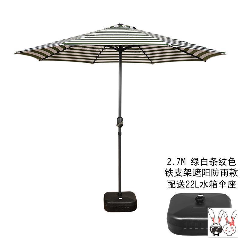 2.7-meter iron rod - standard sunshade model with green and white stripes (includes umbrella stand)