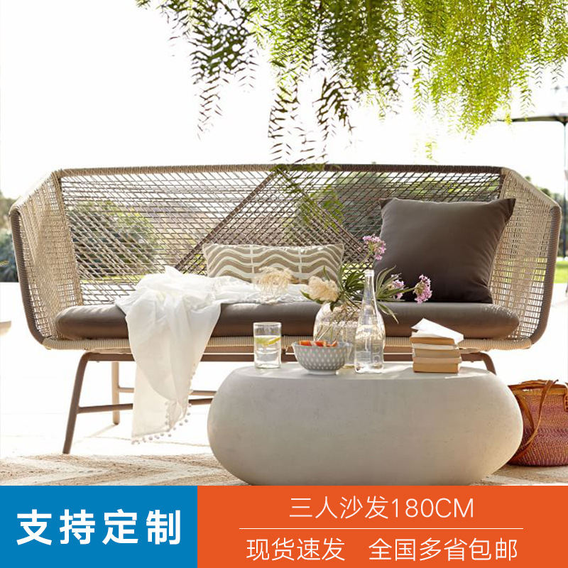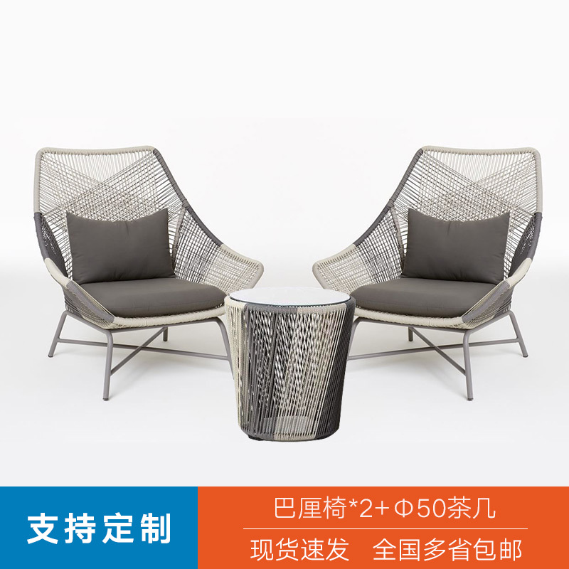 Outdoor rattan chair set of three, home-use rattan courtyard sofa, simple and casual outdoor coffee table set, balcony small table and chair
