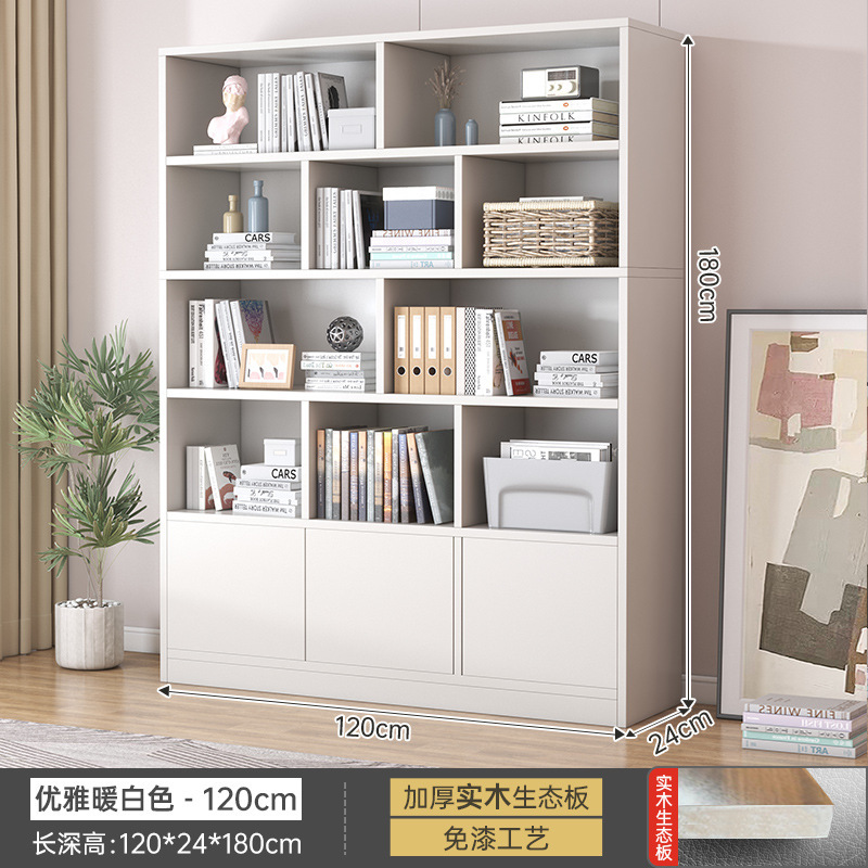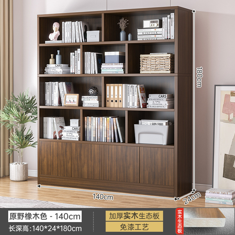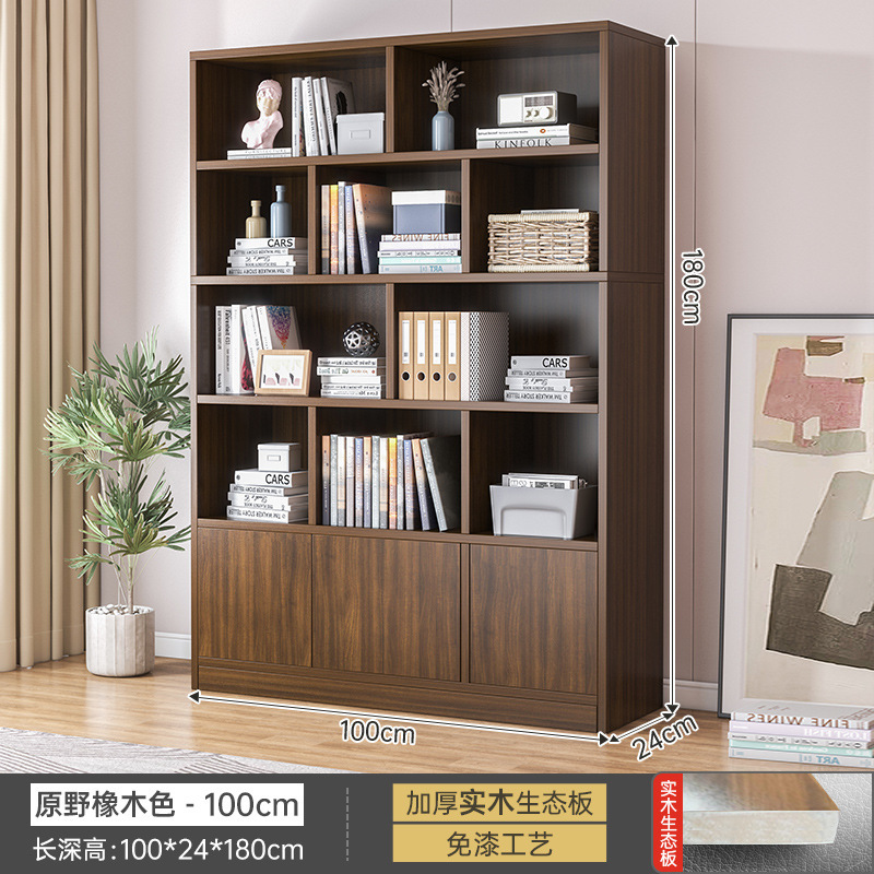 實木書櫃落地書架置物架帶門格子櫃客廳大容量防塵儲物組合柜子