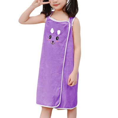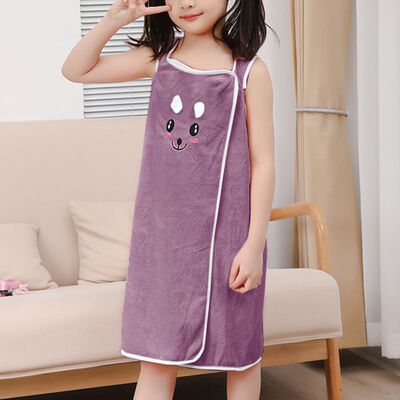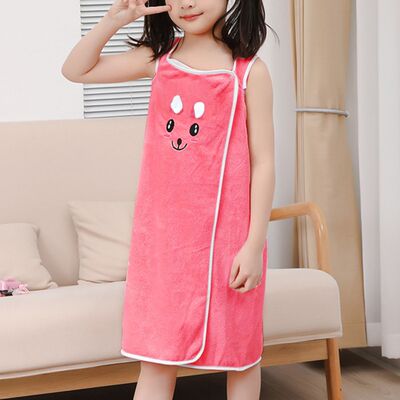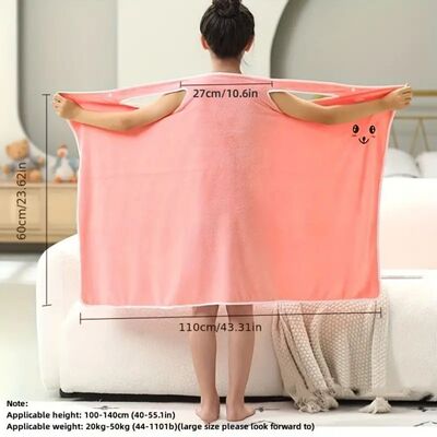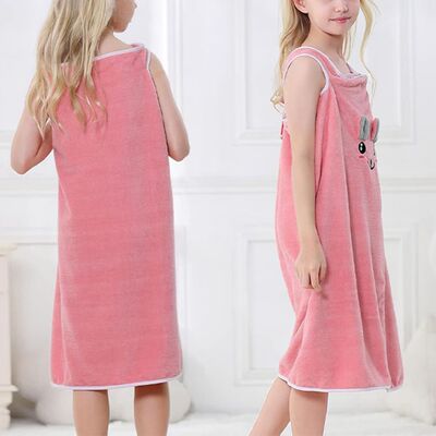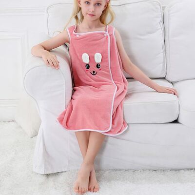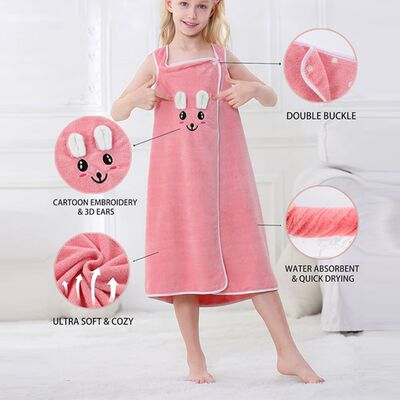Children's Wearable Rabbit Ears Bath Robe for Girls, Thick Absorbent Quick-Dry Soft Coral Fleece with Adjustable Snaps Bath Towel